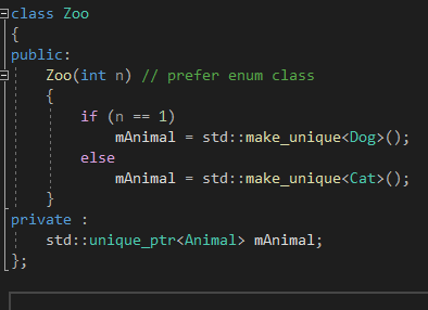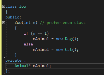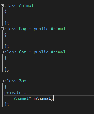 이때 Zoo 라는 동물원 클래스에서 멤버변수로 Animal* (포인터) 가지고 있을때