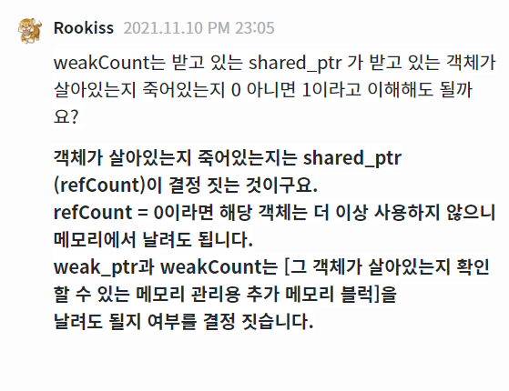참고로 강사님이 운영했던 서버 프로젝트에서는 weak_ptr을 쓰지않고 shared_ptr 하나로만 사용했다.
