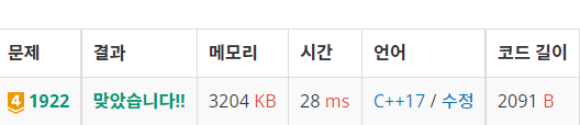 [ 문제 ] : https://www.acmicpc.net/problem/1922
