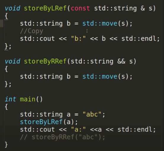( 아무래도 string 클래스 내부에서 string&& 은 이동생성자가 호출되는데 const string& s 에 Move() 연산자 하면 string에서이동생성자가 호출되지 않는것 같다. )