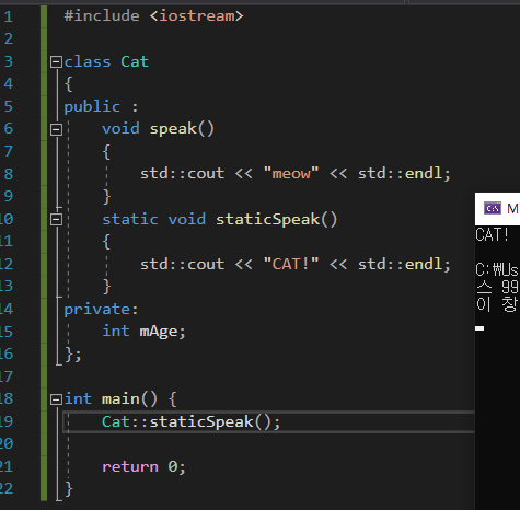 * 다만 Cat:: 이라는 클래스 소속이라고 일종의 namespace가 있는 것이다. ( Cat 의 모든 object 가 공유할 수 있다. )