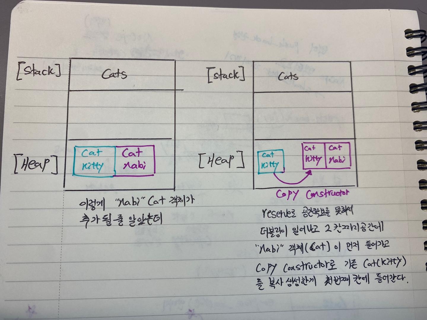기존의 Cat 객체가 copy constructor 로 생성되는것보다 move constructor가 효율적이다.