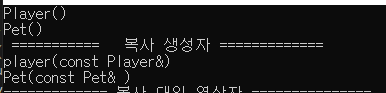 - Pet 을 멤버 변수로 가지고 있었는데 Pet 클래스의 복사 생성자가 호출 되었다.