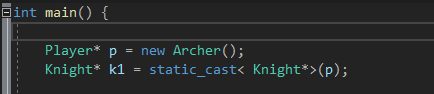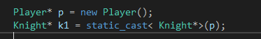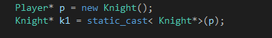 단, 안전성은 보장 못함. ( Player도 Knight 일 수 있으니깐 아예 말이 안되는것은 아니다. 그러니깐 static cast 가 가능하다. )