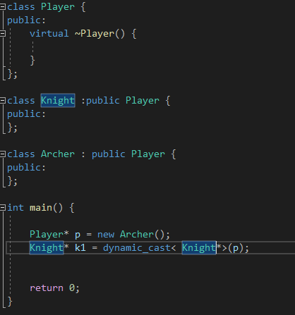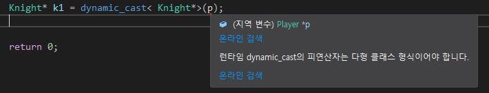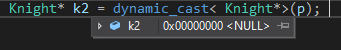 그래서 만약 p가 진짜 Knight 인지 아닌지 체크하려면 dynamic_cast 를 활용하면 된다.